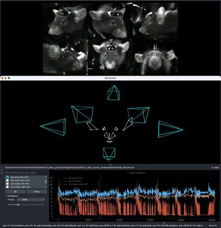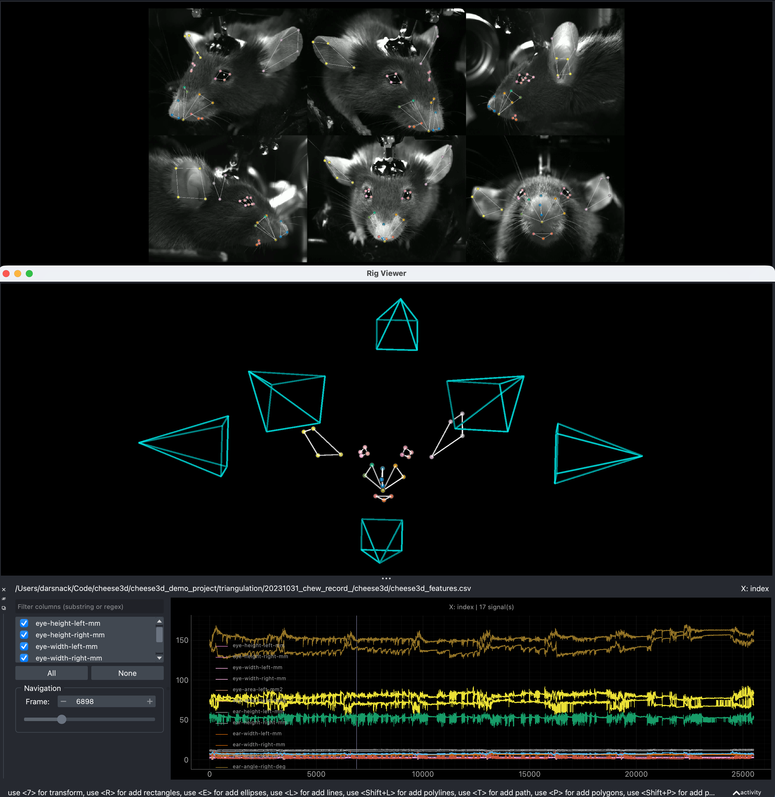 Cheese3D is a pipeline for tracking mouse facial movements built on top of existing tools like DeepLabCut/DeepLabCut and lambdaloop/anipose. By tracking anatomically-informed keypoints using multiple cameras registered in 3D, our pipeline produces sensitive, high-precision facial movement data that can be related internal state (e.g., electrophysiology).